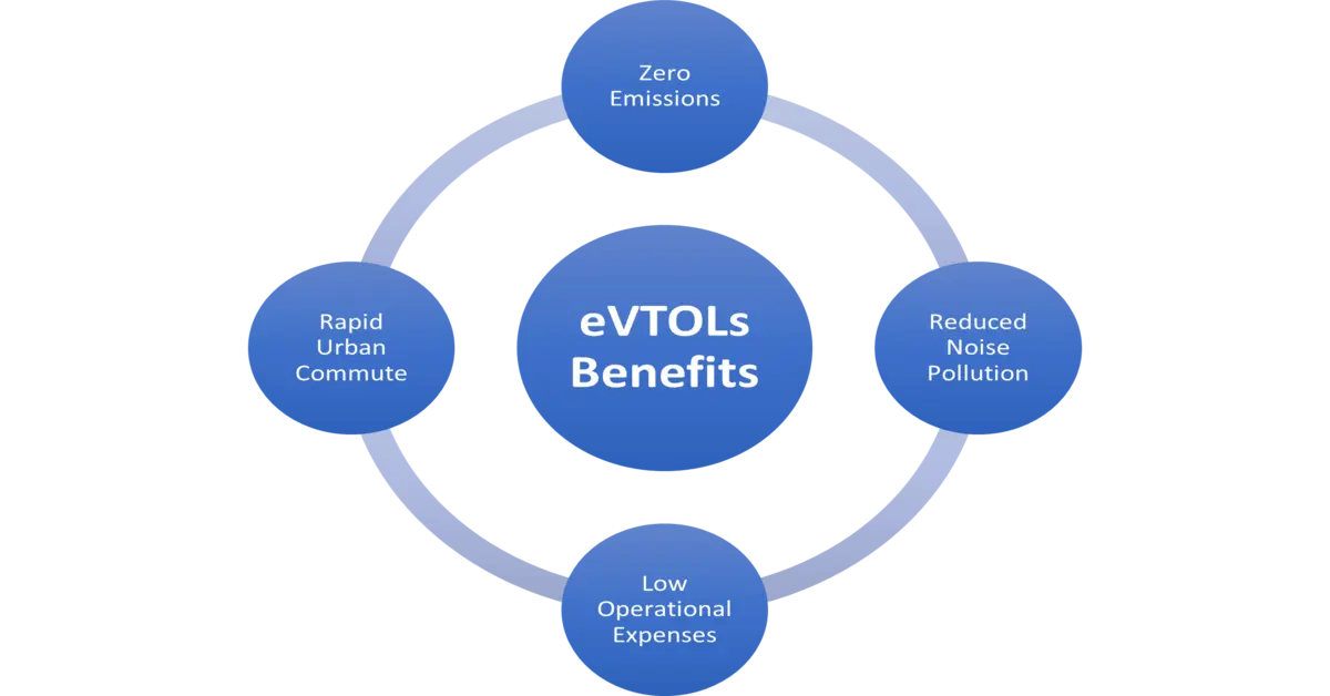 The concept of eVTOLs is not just another cutting-edge technology; they have been unveiled to redefine the transport facility by combating travel duration, environmental impact, and revolutionizing flying cars into reality. The following are a few benefits of eVTOLs that include: