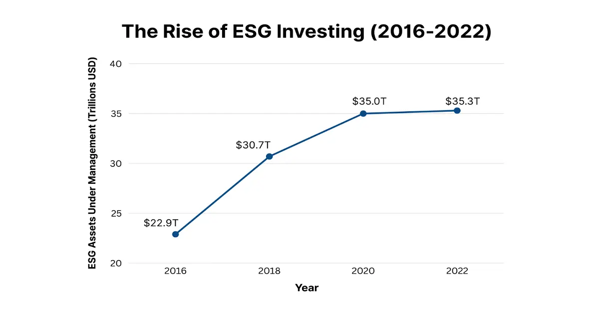 ESG investing has grown from a niche approach to a global movement. According to the Global Sustainable Investment Alliance, ESG assets under management hit $35.4 trillion in 2022, accounting for about one-third of all managed assets globally. This growth is powered by several factors, as mentioned below: