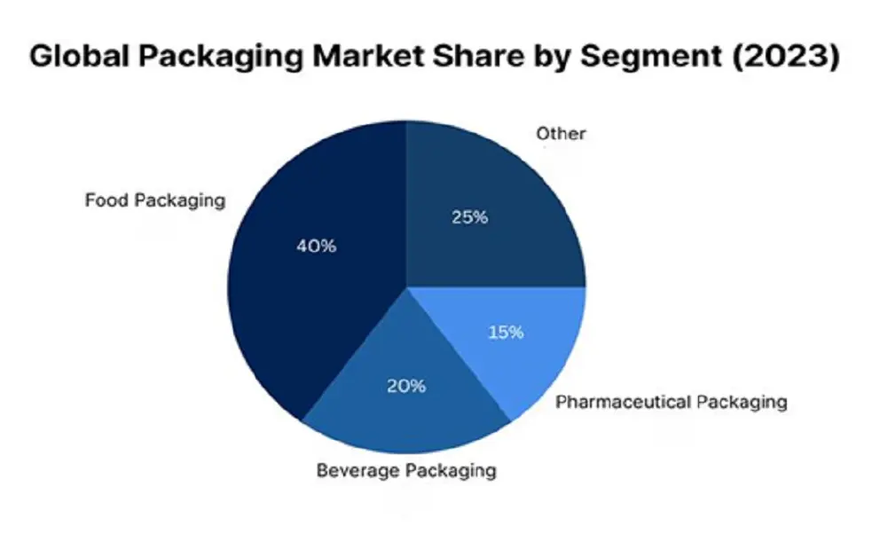 The industry extends to various sectors, including food and beverage, making it the largest segment, followed by pharmaceuticals, cosmetics, and industrial goods. In 2023, food packaging contributed to 40% of the packaging market worldwide, followed by beverages at 20% and pharmaceuticals at 15%. Materials such as plastic, paperboard, metal, and glass lead, with each of them delivering unique advantages and drawbacks. Plastics entailed a 35% share of packaging materials in 2023, followed by paperboard (31%) and metal (15%). In terms of sustainability impact, in 2023, 25% of global packaging was made from recycled materials, to reach 50% by 2030.