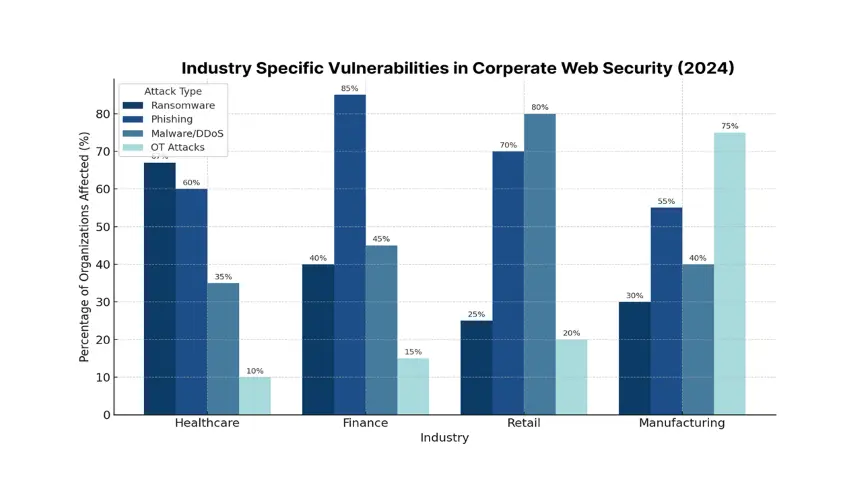 - Manufacturing: Threatened by operational technology (OT) attacks disrupting supply chains.
