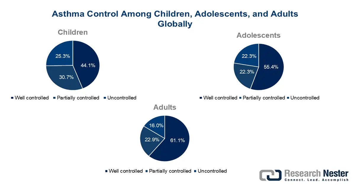 国際市場は、喘息やアレルギー性鼻炎といった慢性呼吸器疾患の負担の急増によって大きく牽引されています。2025年に発表された世界喘息報告書によると、10人に1人近くの子供が喘息を患っており、これは最も一般的な非感染性疾患(NCD)です。さらに、この疾患は成人にも多く見られ、成人の約15人に1人が罹患しています。さらに、2025年7月のCDC報告書によると、米国における年間の医師の診察件数は490万件で、これは全体の6.3%を占めています。さらに、慢性閉塞性喘息を除く、この疾患による国内の救急外来受診件数は140万件に上ります。