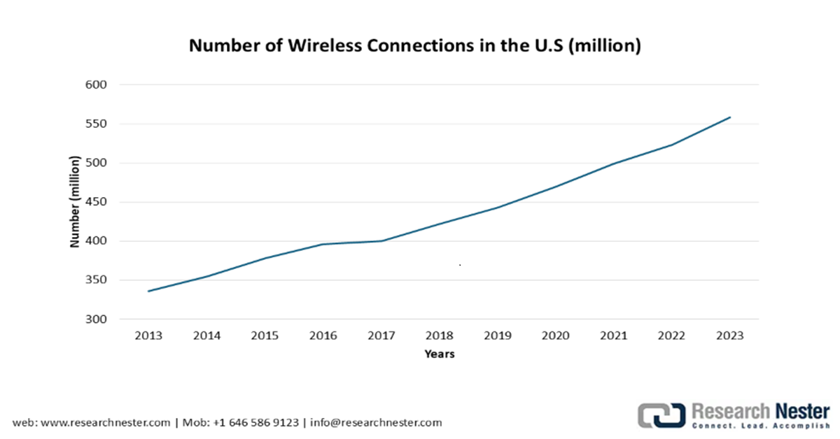 - Shifts in consumer behavior and increased demand for remote work and education: With increasing work-from-home job opportunities, remote learning, and IoT adoption, the need for reliable high-speed, low-latency internet is rising. According to the U.S. Bureau of Labor Statistics, about 35.5 million people worked remotely or from home for pay in the first quarter of 2024, an increase of 5.1 million as compared to the previous year. Remote workers made up 22.9% of the employed population, rising from 19.6% in Q1 2023. Therefore, the implementation of 5G fixed wireless access is rapidly gaining momentum as a cost-effective alternative to conventional wired broadband, offering fiber-like speed without extensive cable or fiber expansion.