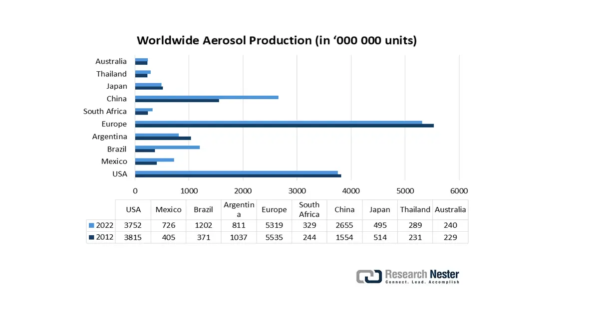- Growing demand for renewable/bio-based chemicals: Growing demand for renewable and bio-based chemicals for lockdown propellants (aerosol cans) and as solvents is increasing because of environmental regulations and changing consumer preferences. According to the U.S. Department of Energy's 2023 Billion-Ton Report, the U.S. can triple its biomass production to over 1 billion tons per year. This could generate around 60 billion gallons of low-emission liquid fuels annually while still meeting food, feed, fiber, and forest product demands. Utilizing unused biomass could add 350 million tons annually, further expanding the bioeconomy. This also represents a new trend in the manufacturing environment and will create new B2B channels for aerosol can manufacturers toward ecologically sound aerosol packaging products. Regulatory conformity and differentiation - Integrating bio-based solvents or compressed air/CO2 as propellants can help companies take advantage of both regulatory conformity and differentiation in environmentally-minded markets or regions, such as Europe and North America.