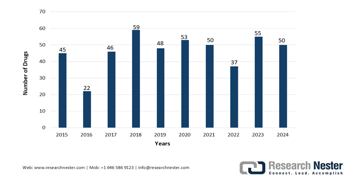 The worldwide anti-infective drugs market is positively influenced by factors including patient expiration for suitable antibiotics, regulatory harmonization across different regions, an increase in drug approvals, reimbursement policies, and national formularies, the prevalence of immunocompromising conditions and diabetes, and expansion in the patient pool. Based on government estimates published by the U.S. Food and Drug Administration (FDA) in 2025, 26 of 50, which is 52% of novel drug approvals, were readily approved in 2024 for diseases, including Neimann-Pick disease Type C, Duchenne muscular dystrophy, primary biliary cholangitis, familial chylomicronemia syndrome, and classical congenital adrenal hyperplasia. Moreover, of the 50 drugs, the FDA’s Center for Drug Evaluation and Research (CDER) surpassed its Prescription Drug User Fee Act (PDUFA) objectives for 47, which is 94% drugs, thus making it suitable for boosting the market globally.