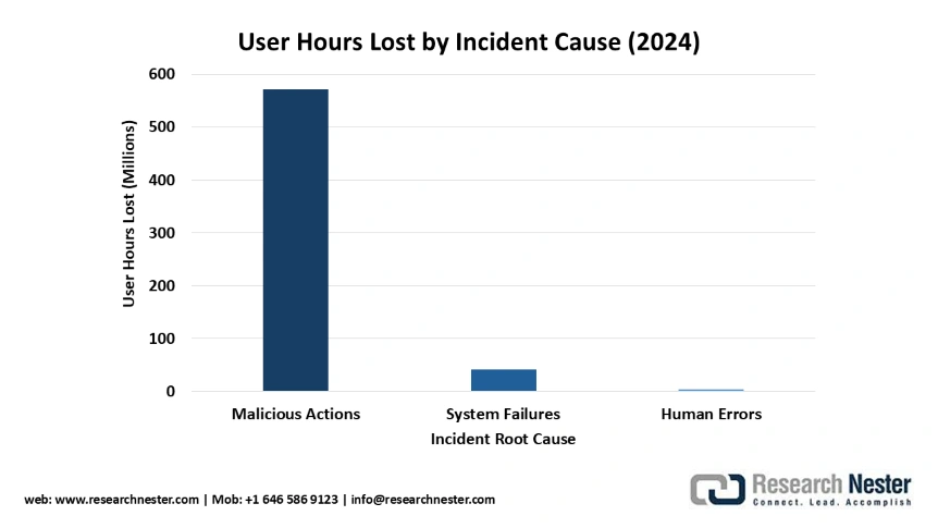 The cybersecurity incident data reveals substantial market opportunities for defect management tools, with malicious actions representing the highest-value segment despite fewer incidents due to their massive impact of 571 million user hours lost. System failures, while more frequent, drive demand for proactive defect detection and root cause analysis tools to prevent hardware and software malfunctions.