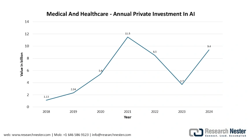 - Rising demand in the health sector: The demand for digital transformation in healthcare is significantly driving the growth of the global digital transformation market. AI is at the forefront of this shift, offering transformative possibilities in diagnostics, treatment, and operational efficiencies. The WEF report 2025 states that with 4.5 billion people lacking access to essential healthcare and a projected shortfall of 11 million health workers by 2030, AI holds the capability to close this gap and transform healthcare worldwide. AI technologies are already assisting healthcare professionals in detecting early signs of diseases, triaging patients, and analyzing complex medical data, thereby improving patient outcomes and reducing treatment costs.