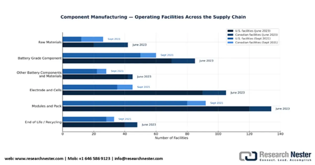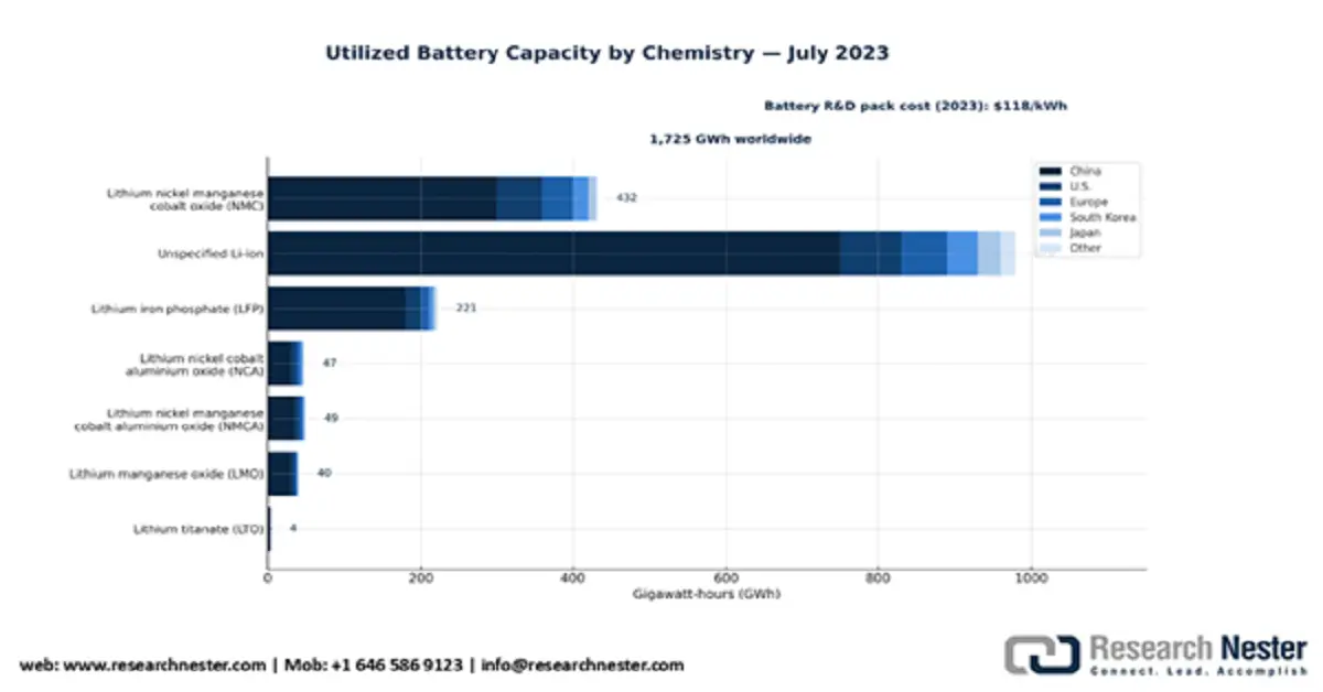 In terms of component manufacturing and overall battery supply chain, China dominated the worldwide cell production and accounted for 83% lithium cell capacity, followed by Europe (9%), the U.S (4%), South Korea (2%), Japan (1%), and the rest of the world (1%). The U.S. held the largest share (53%) in cell fabrication, whereas China’s share increased to 6% in 2022 from <1% in 2020.