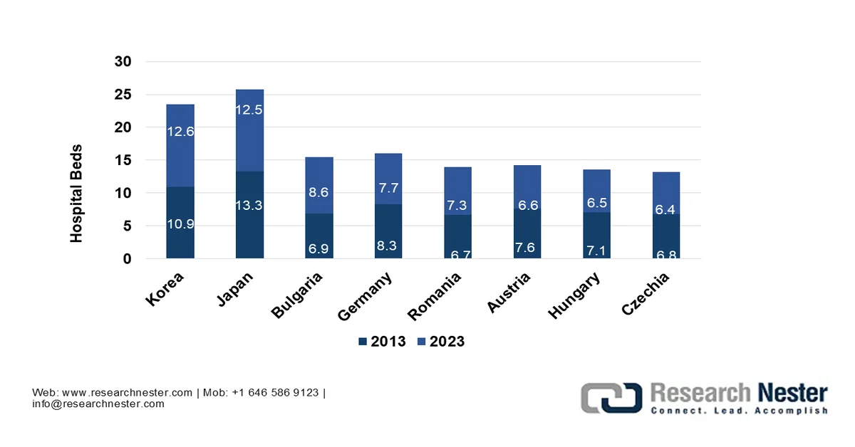 The international market is rapidly evolving since healthcare systems globally confront a rise in patient volumes, a surge in hospital beds, resource constraints, and an increase in the demand for digital transformation. Besides, according to official statistics published by OECD in November 2025, there exists an average of 4.2 hospital beds per 1,000 population as of 2023. Regarding this, these rates have been extremely high in Korea, accounting for 12.6 beds per 1,000 population, which is followed by 12.5 per 1,000 in Japan. Besides, more than 2/3rd of countries have reported between 3 and 8 hospital beds per 1,000 population, which is creating an optimistic outlook for the overall market across different nations.