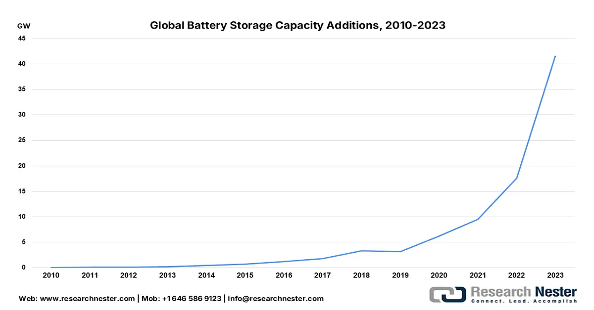 The integration of next-generation batteries with renewable energy systems is estimated to bring a critical market shift in the years ahead. The strong demand for grid-scale storage solutions is fueling the application of next-gen batteries. The massive public-private investments in clean energy infrastructure expansion are poised to amplify the production and commercialization of next-generation batteries in the years ahead. According to the International Energy Agency (IEA), battery storage for power was the fastest-growing energy technology available in 2023, with more than twice as much added compared to the previous year. A total of 42 gigawatts of battery storage was added worldwide through large-scale battery projects, home and business batteries, small power grids, and solar home systems for electricity access.