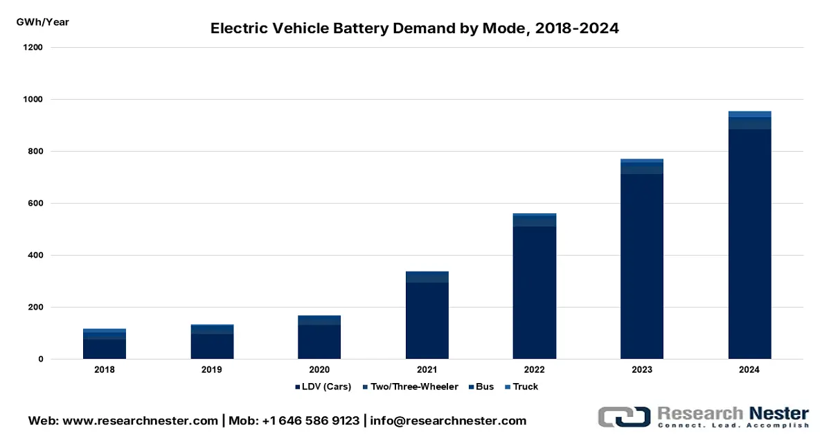 The electric vehicles (EVs) segment is expected to capture 58.6% of the next generation batteries market share throughout the study period. The booming trend of zero-emission vehicles is driving the sales of next-generation batteries. IEA reveals that the electric car sales in 2024 surpassed 17 million. The vehicle-to-energy technology is also contributing to the robust adoption of next-generation batteries. In 2024, the demand for batteries in the energy sector, including electric vehicle (EV) batteries and energy storage, hit a record 1 terawatt-hour. The battery demand for just one week in 2024 was more than the total demand for an entire year ten years ago. Thus, this highlights that the EV sector is poised to double the revenues of next-generation batteries in the years ahead.