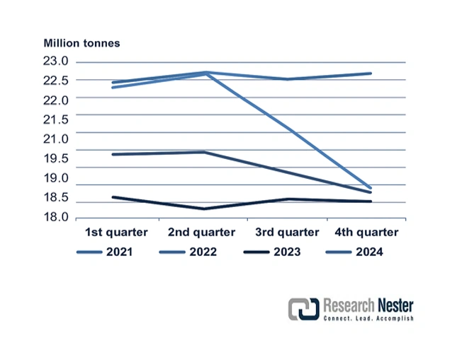 The protective packaging market is expected to witness an upward trend over the forecast years, primarily driven by the increasing volume of global trade in delicate and high-value products, including electronics, pharmaceuticals, and perishable products. According to the U.S. Bureau of Transportation Statistics, cross-border freight value between the U.S., Canada, and Mexico was USD 1.6 trillion in 2024, a 1.8% growth over 2023, of which surface modes (trucking and rail) comprised 77.1% of total freight value. This growth emphasizes increased frequency of shipments and distance, which require more protective shipping options to reduce damage during shipping and handling. In addition, industrial changes to the model of regional distribution and just-in-time delivery focus on internal logistics in which protective packaging is a decisive factor. Protective packaging will not only maintain product safety in transit, but will also contribute to sustainability through waste and cost reduction. This highlights the increased importance of protective packaging in maximising supply channel efficiencies and in harmony with the environmental objectives that are central to the demands of new industrial distribution models.