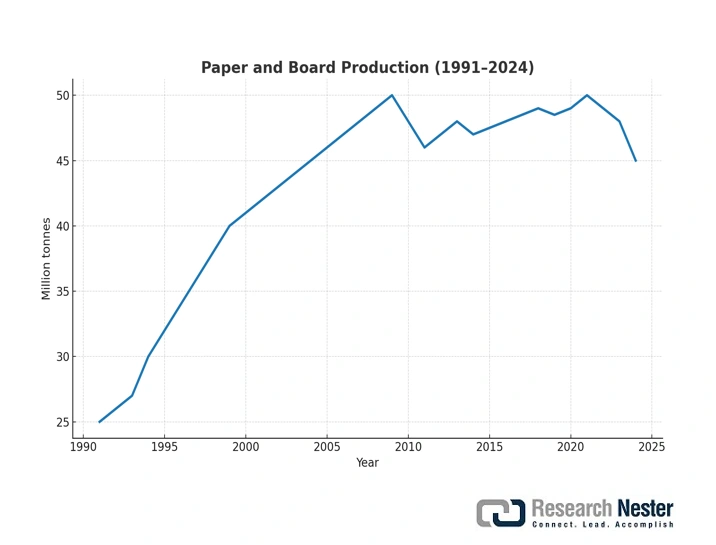 The supply chains are responding to increasing demand through increasing producer price indices and production activity. The U.S. Bureau of Labor Statistics reported that the PPI of corrugated paperboard in sheets and rolls rose by about 331.80 in June 2024 to 348.40 in June 2025. Similarly, the PPI of corrugated shipping containers was 326.617 in July 2024 and 356.022 in July 2025. Such indices indicate that packaging manufacturers face significant cost strain and point towards the continuous investment in production facilities to match the rising demand. In addition, as per the CEPI Preliminary Statistics 2024 report, paper and board output in the CEPI member countries increased by 5.2% in 2024 to an estimated 77.8 million tonnes. This is a solid recovery of earlier declines and a positive indicator of an increase in demand across all the major grades of paper and board. Other major production countries that saw similar growth trends include the U.S., China, India, Brazil, Canada, and South Korea, with growth rates of between 1.5% and 5.5%. This recovery reflects an increasing role of paper-based materials, including those used in protective packing, in global trade and supply chains. Collectively, these dynamics support the idea that the growth of the protective packaging market is driven by the strong growth of the supply chain, the high production capacity, the increased input costs, and the increased global trading activity.