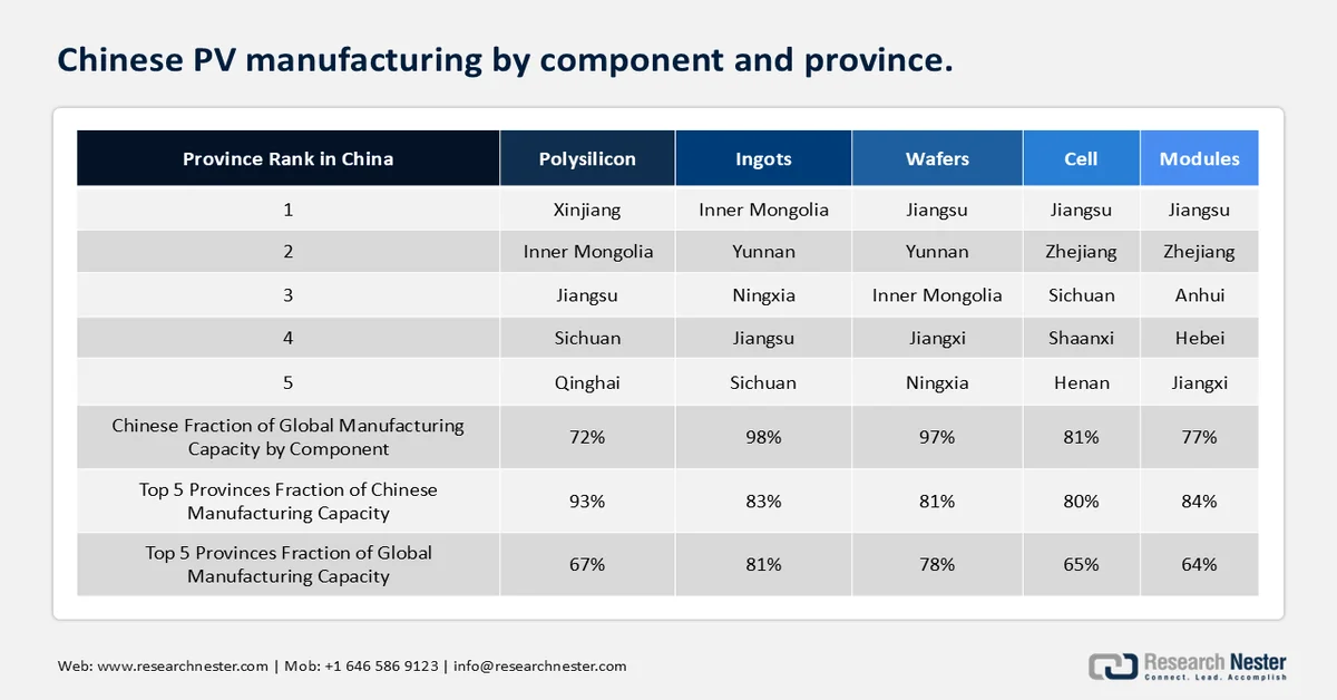 - Canadian Solar Inc. operates across the entire solar PV market value chain, including manufacturing, project development, and energy solutions. The company has a strong global footprint with utility-scale and distributed solar projects. Its diversified portfolio and consistent innovation drive its competitive position in the solar photovoltaic market.