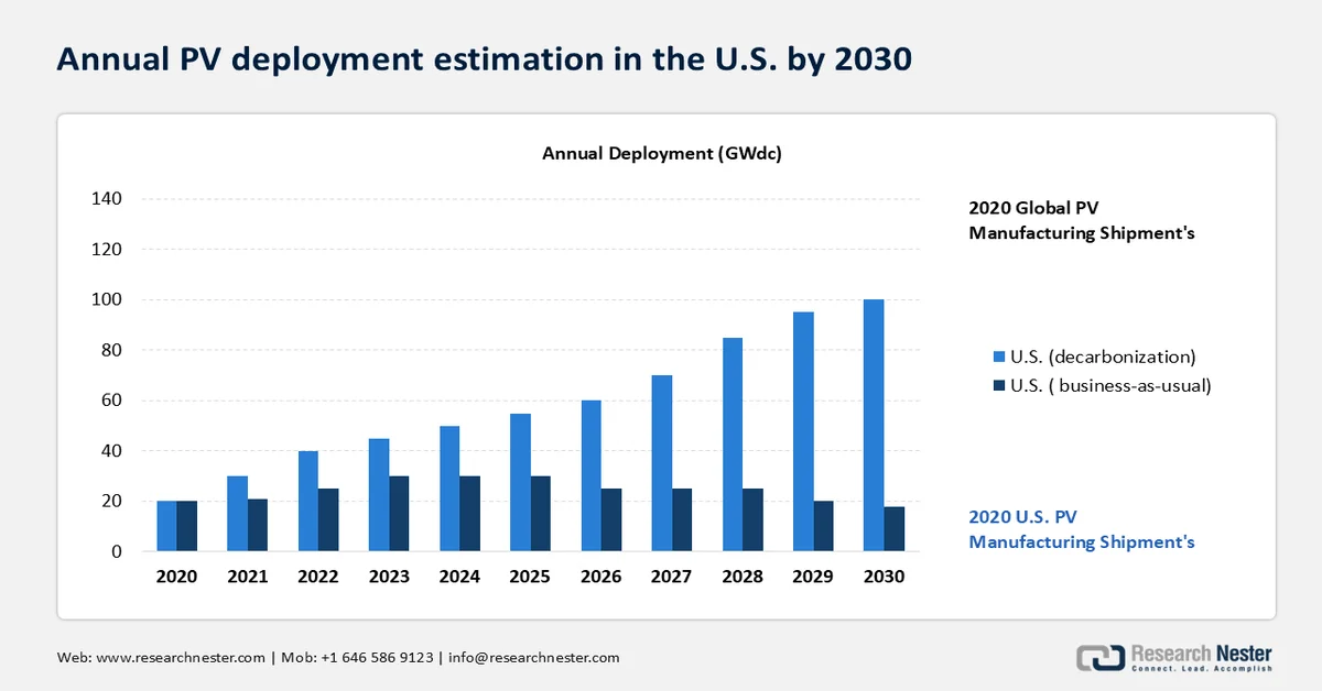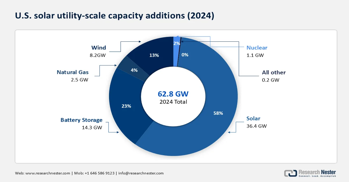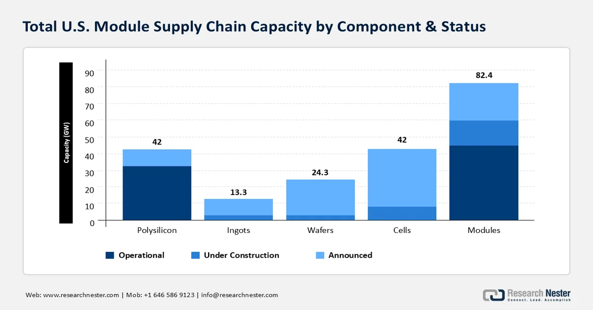The U.S. solar PV market growth is driven by surging investments in solar manufacturing and deployment, along with rapid capacity expansion, enabling large-scale installation of PV systems. Additionally, the rise in energy storage strengthens grid reliability and supports efficient solar integration, accelerating overall solar photovoltaic market adoption.